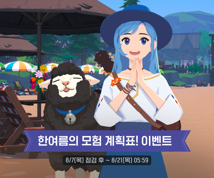 - 이벤트 기간 동안 우측 상단 [메뉴(≡)] → [이벤트] → [한여름의 모험 계획표!] 탭에서 미션 진행 완료에 따라 선물을 받으실 수 있습니다.