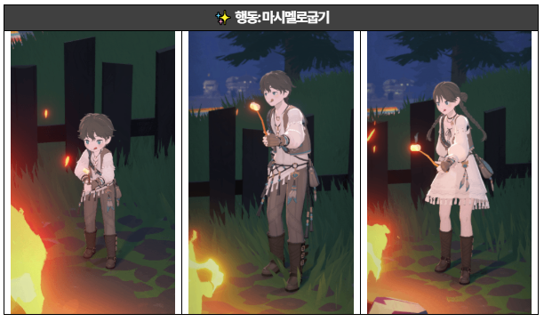 | 컬러풀 캠프파이어 키트 1회 사용하기 | 행동: 마시멜로굽기 | 1개 |