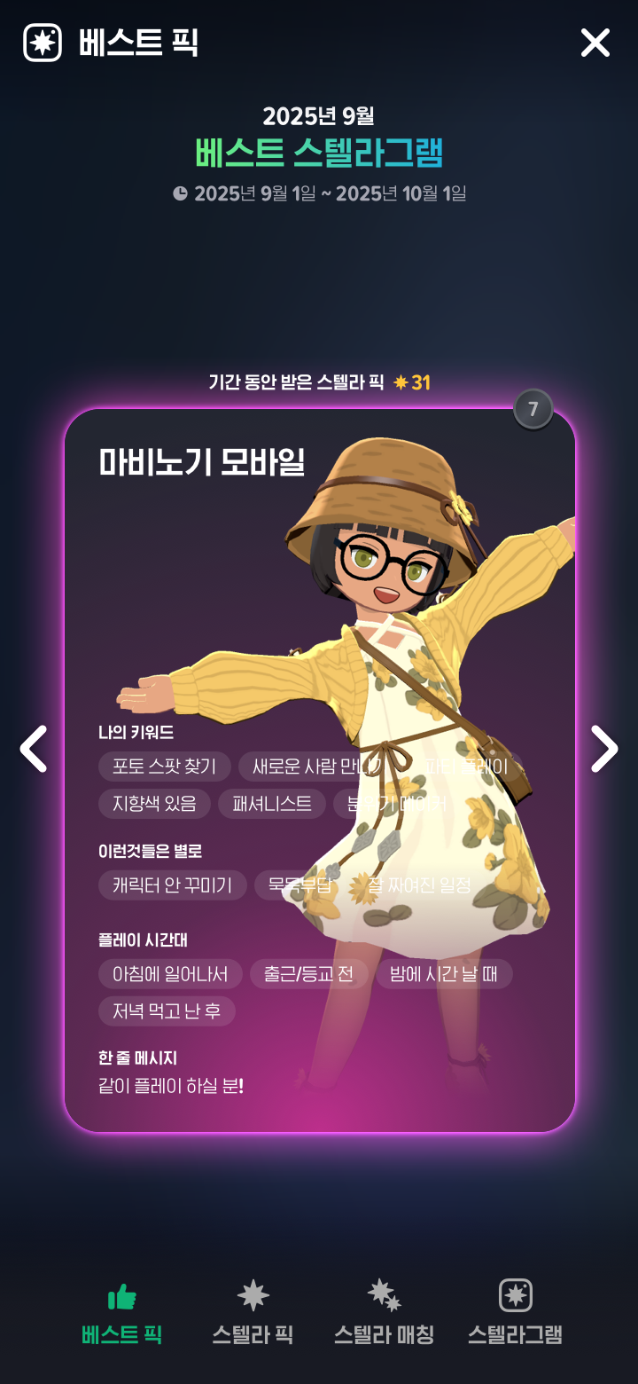 - 베스트 스텔라그램 및 스텔라 픽은 서버 단위로 집계되어 노출됩니다.