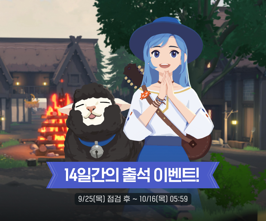 - 이벤트 기간 동안 우측 상단 [메뉴(≡)] → [이벤트] → [14일간의 출석 이벤트!] 탭에서 미션 진행 완료에 따라 선물을 받으실 수 있습니다.