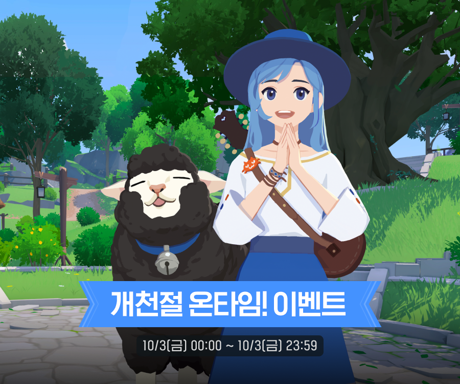 다가오는 10월 3일(금), 개천절 당일 게임에 접속하시는 모든 모험가님께 온타임 선물을 드립니다.
