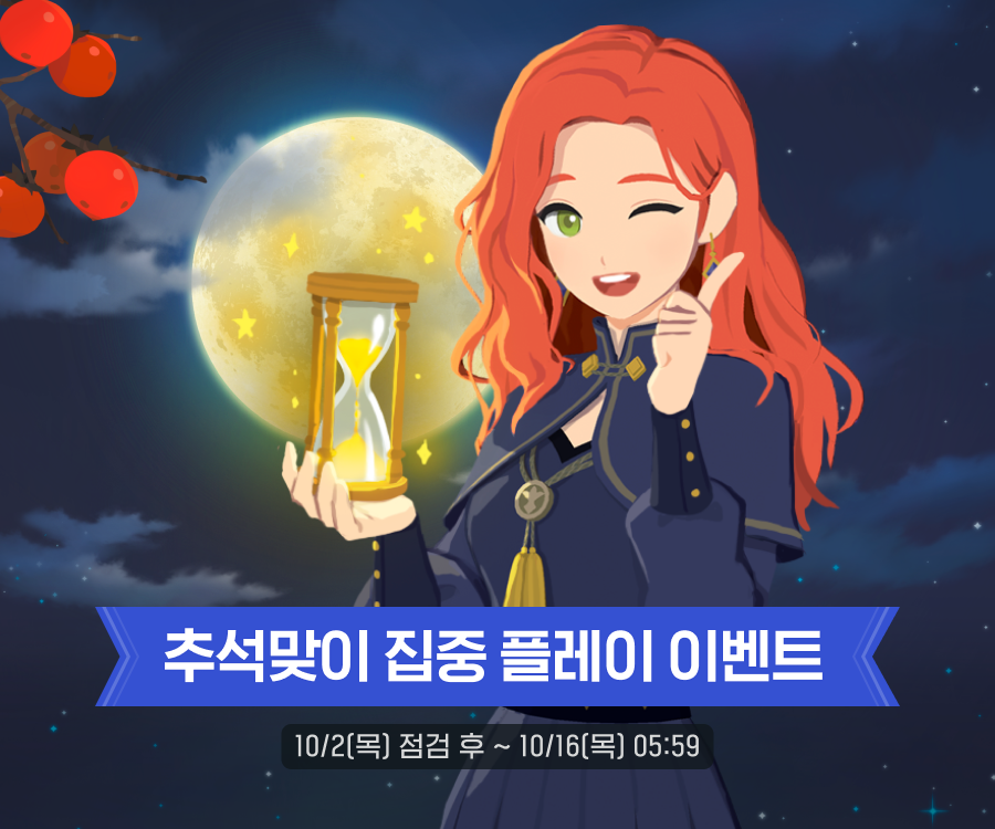 - 자세한 내용은 게임 내 화면 우측 상단 [메뉴(≡)] → [이벤트] → [추석맞이 집중 플레이 이벤트] 탭에서 이벤트를 확인하실 수 있습니다.